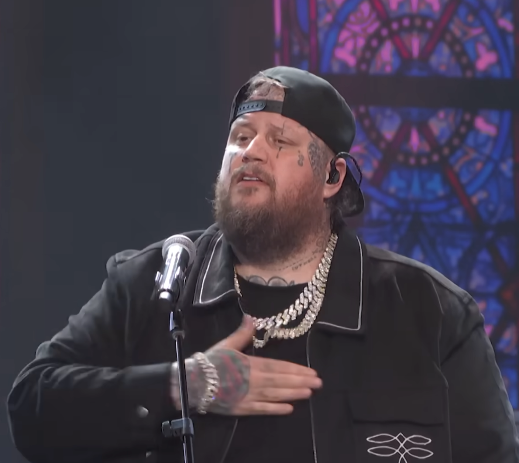 MEN’S HEALTH – JELLY ROLL FISTS a handful of loose skin beneath his black compression shirt and moves it from his hip over toward his belly, pulling it out of the way.